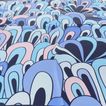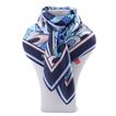 Luxusní hedvábný šátek s barevným potiskem v modrých tónech.
