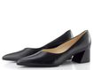 Jednoduchá elegantní linie dámských lodiček s úzkou špičkou a širokým podpatkem.
