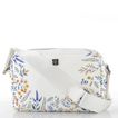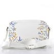 Luxusní malá dámská kabelka z hladké kůže v bílé barvě s jemným květinovým potiskem.