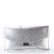 Dámské kožené psaníčko v metalické stříbrné barvě s přídavným řetízkem.