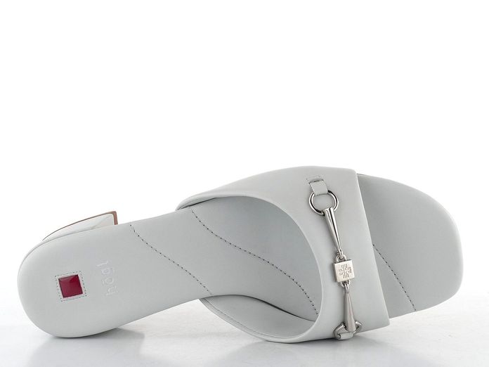Pohodlné a stylové pantofle od značky Högl jsou ideální volbou pro ty, kteří hledají kombinaci elegance a komfortu. Tyto dámské pantofle se vyznačují prémiovou hladkou kůží ve světlém, ledově modrém odstínu, který přechází do šeda. Díky kulatějšímu tvaru špičky a měkce polstrovanému pásku zajišťují maximální pohodlí při každém kroku. Ozdobná kovová aplikace ve stříbrné barvě dodává pantoflím nádech luxusu. Celokožená podšívka a prošívaná stélka přispívají k celkovému komfortu. Široký potažený podpatek o výšce 4 cm poskytuje stabilitu a eleganci. Tyto pantofle jsou ideální volbou pro jarní a letní sezónu.
