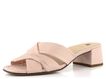 Dámské luxusní pantofle s propletenými širokými pásky v růžové barvě a se širokým podpatkem.