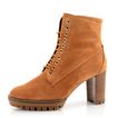 Dámský elegantní kotník z velurové kůže s mírně teplou podšívkou a podpatkem v dekoru dřeva.