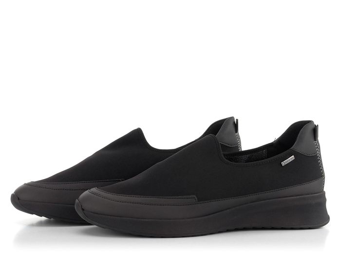 Sportovnější městské polobotky v černé barvě z pružné textilie s membránou.