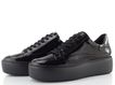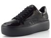 Luxusní šněrovací tenisky z lesklé kůže v černé barvě s vysokou módní platformou.