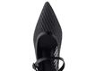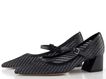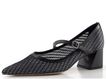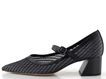Luxusní dámské lodičky ze síťoviny a hladké kůže v černé barvě, s nártovým páskem a širokým podpatkem.